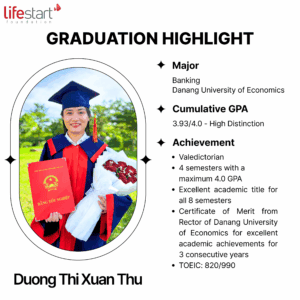 My name is Duong Thi Xuan Thu and I have just finished my four-year Bachelor’s degree in Banking at the University of Economics, Danang University. I am writing today to share the exciting news of my graduation and to express my heartfelt thanks to you and Lifestart Foundation for your generous support throughout the past years.